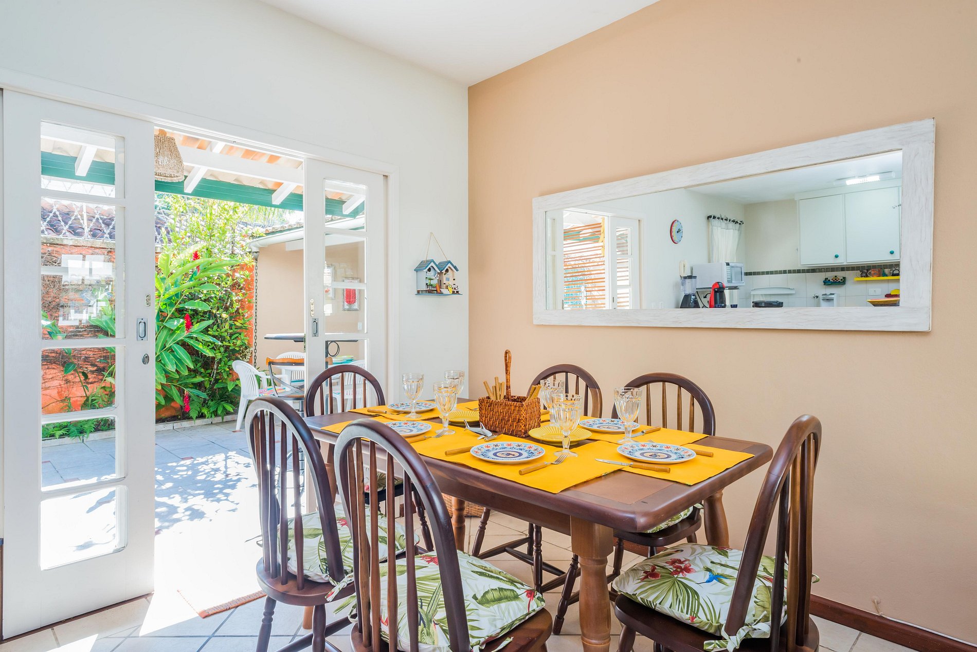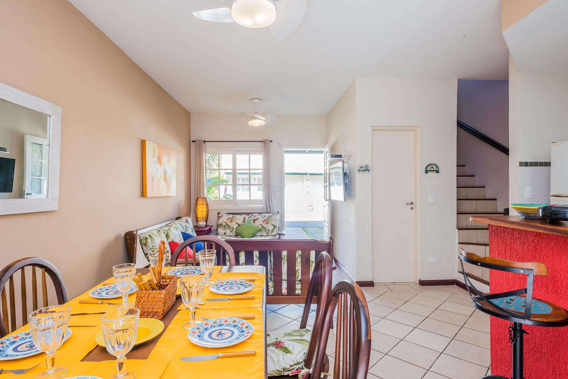 - sala com mesa de jantar 6 lugares, sofá 6 lugares e ar condicionado split inverter.