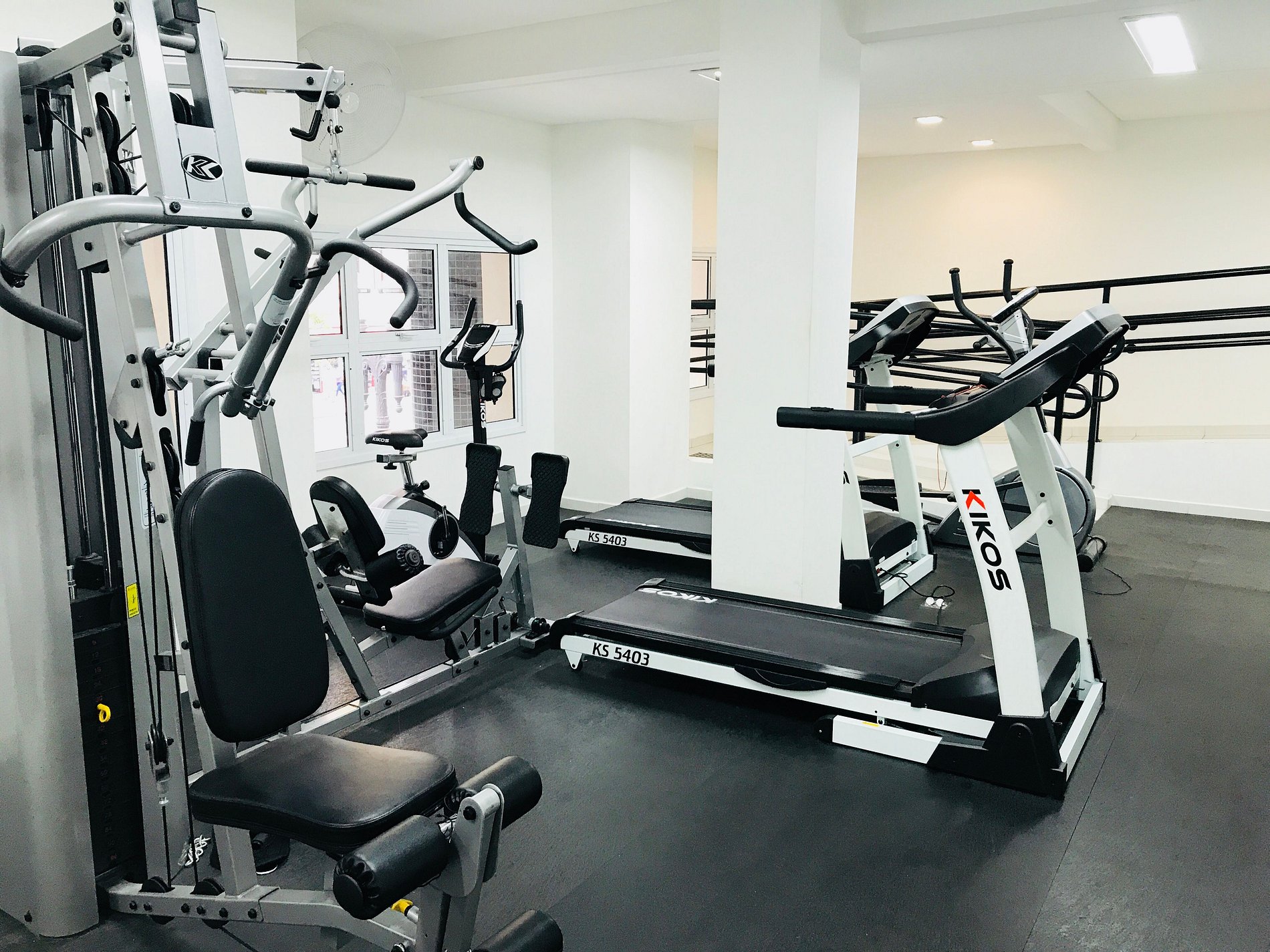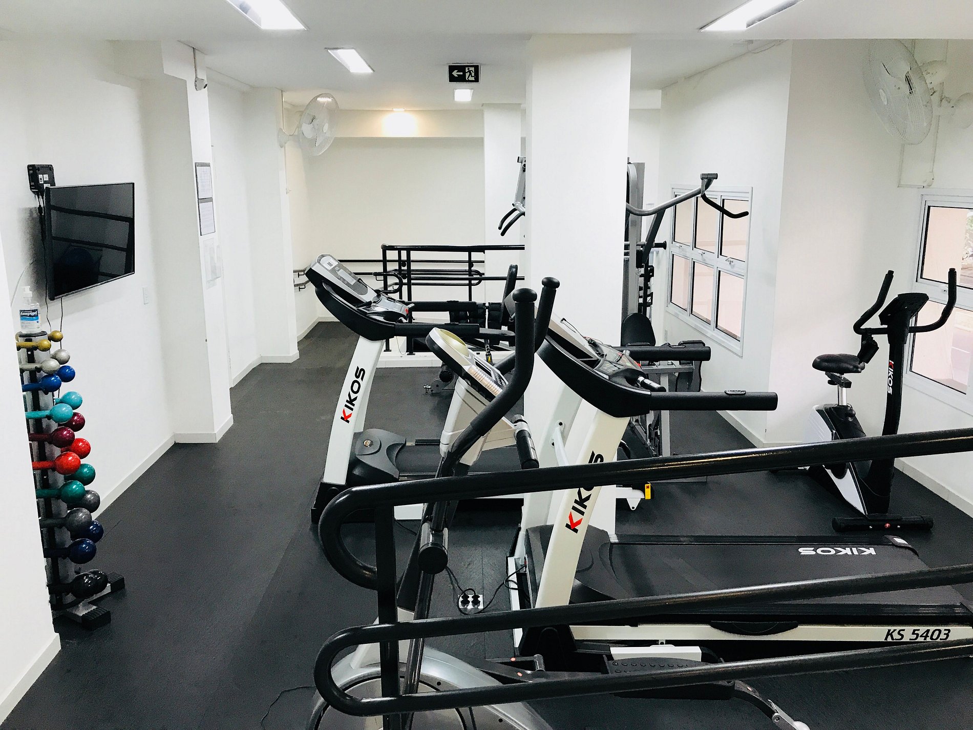 - academia completa com equipamentos de força, esteiras e bikes.
