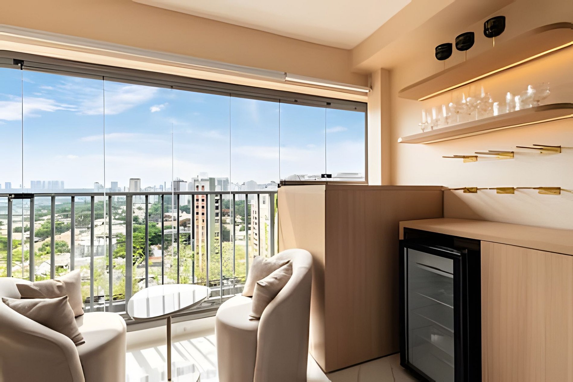 > vista panorâmica > cama queen > wi-fi de alta velocidade > ar condicionado > smart TV com acesso a internet