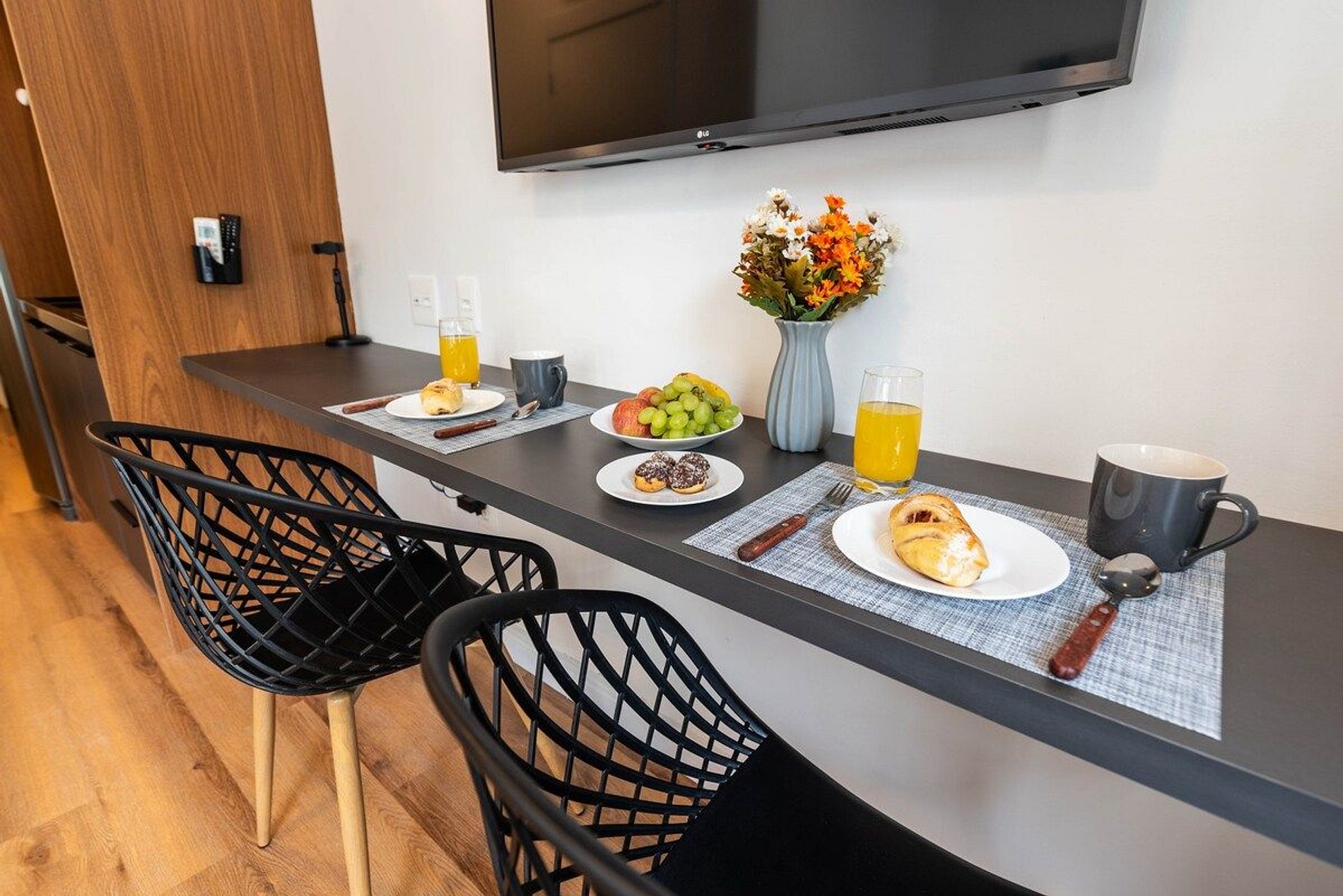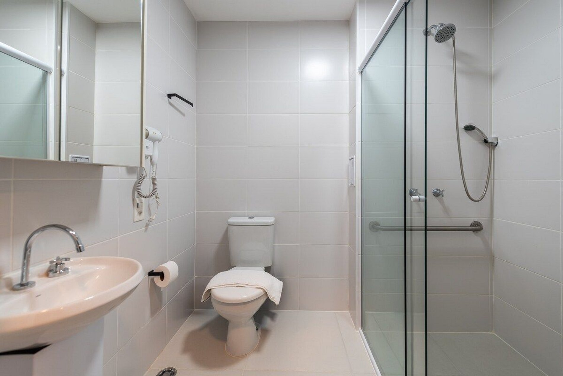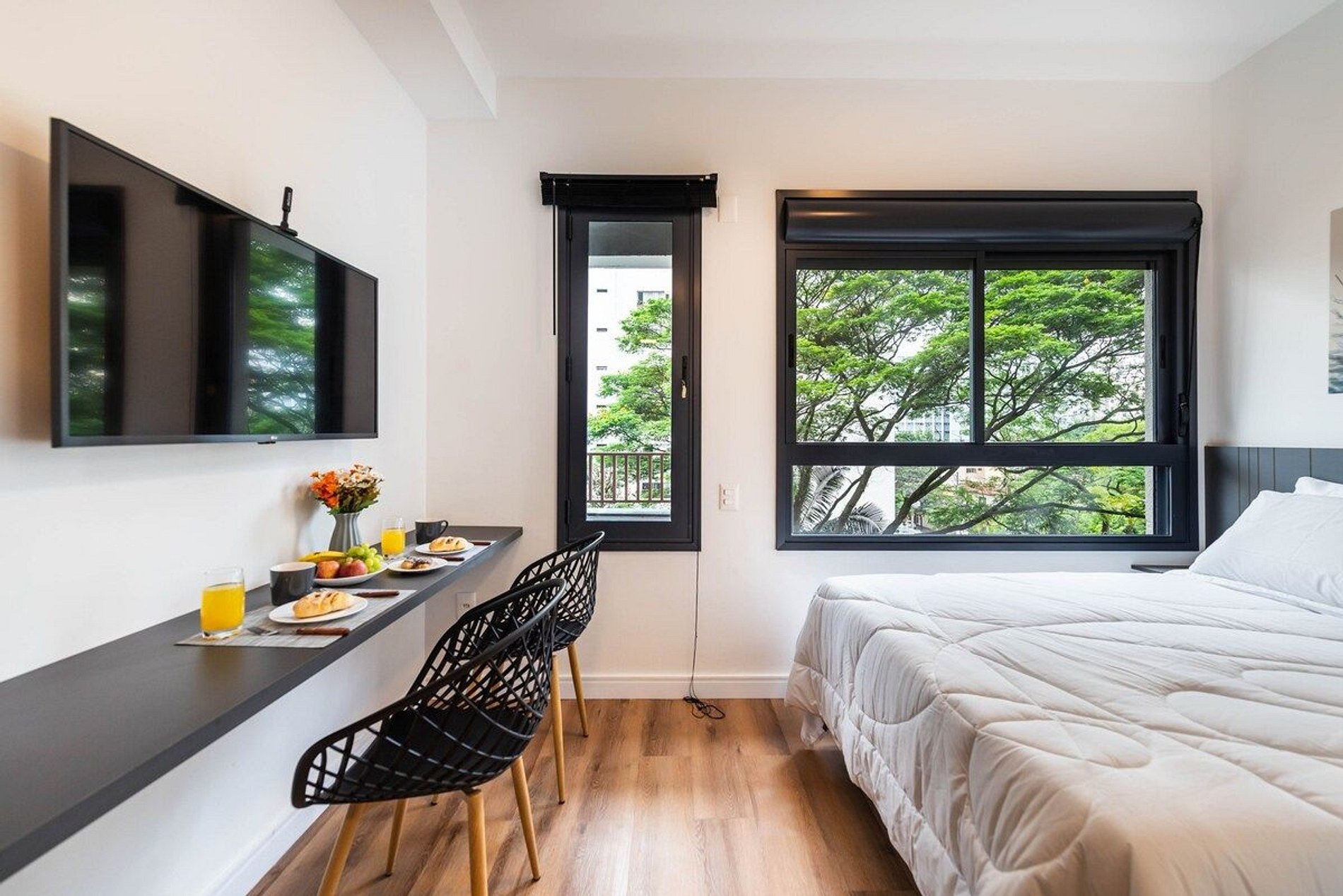 Conforto & Tecnologia > internet de alta velocidade > ar condicionado split > janela com blackout > smart TV com acesso a Apps de Streamings e canais digitais > fechadura eletrônica > maleiro Banheiro completo > amplo banheiro > ducha com aquecimento a gas > box blindex > secador de cabelo Cozinha totalmente equipada > freezer > microondas > cooktop elétrico > cafeteira > sanduicheira > liquidificador > filtro de água > jogo de panelas > jogo de copos > jogo de pratos > jogo de taças > talheres