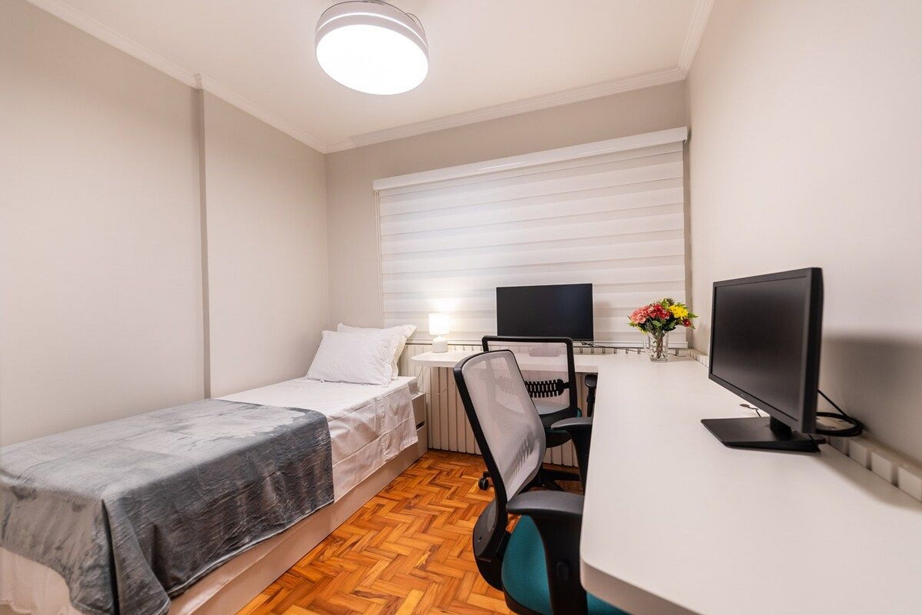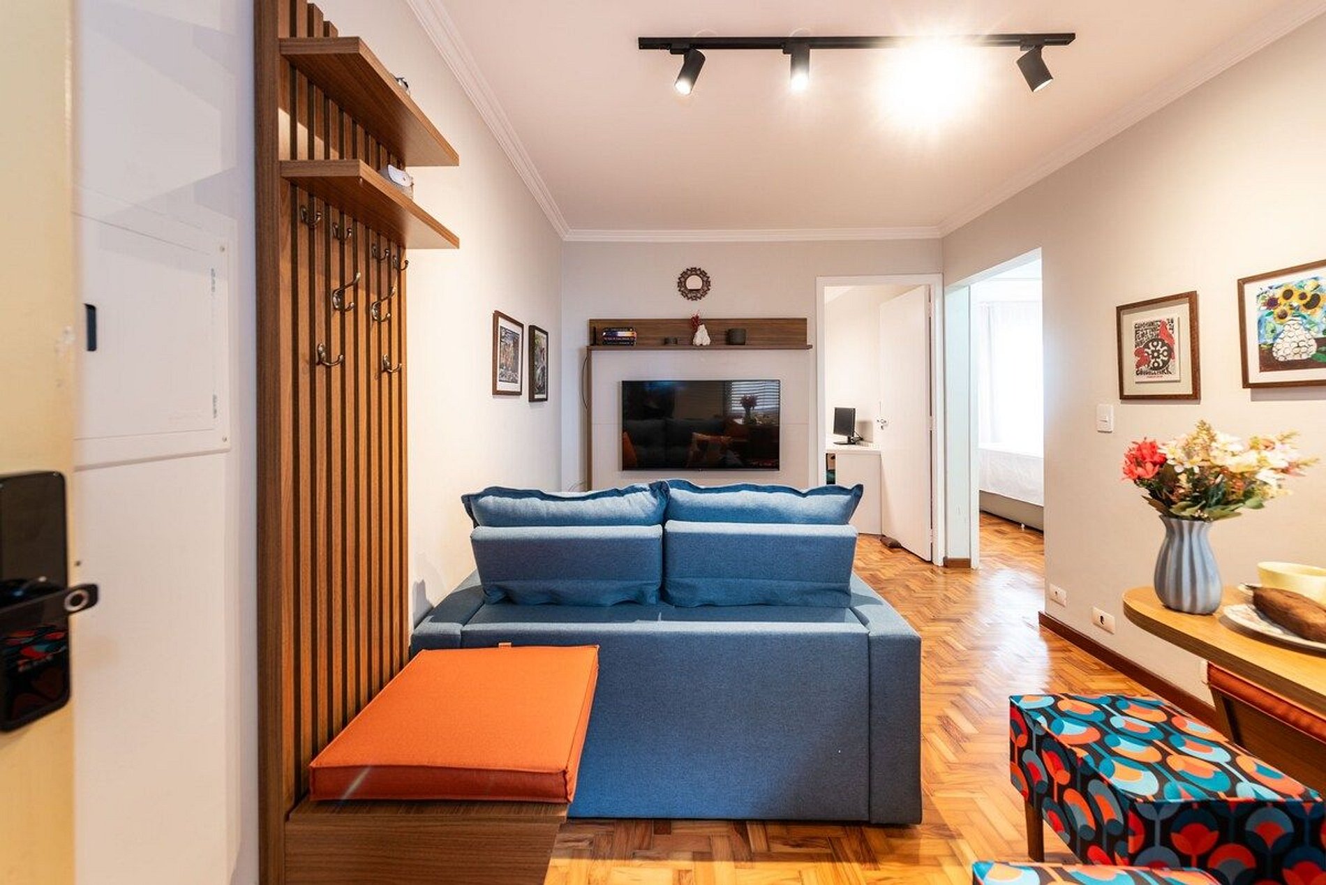 Apartamento recém reformado de 2 quartos a uma quadra da Estação do Metrô Paraíso Conectividade & tecnologia > wi-fi - alta velocidade > smart TV - acesso a internet > fechadura eletrônica Conforto > ventilador/exaustor em ambos os quartos > máquina de lavar roupa e máquina secadora no apto > mesa em canto alemão > fogão a gás com forno Sala dois ambientes - Mesa de jantar em canto alemão para até 4 lugares - Sofá 2 lugares Quarto casal - Cama casal tamanho queen padrão hotelaria - Ventilador/Exaustor de teto com controle remoto. - Cortina black out Quarto solteiro - Bicama - Estação de trabalho com 2 Monitores - Ventilador / Exaustor de teto com controle remoto. Banho completo - Chuveiro grande elétrico - Box blindex - Secador de cabelos Cozinha completa - Geladeira duplex Consul com freezer frost free - Fogão 4 bocas com forno Consul - Microondas Electrolux - Filtro de água Para preparar seu café da manhã - Cafeteira Elétrica Oster - Liquidificador - Sanduicheira Lavanderia completa - Máquina Lavar Consul 12 Kg - Máquina de Secar Brastemp 10 Kg - Tanque - Ferro e tábua de passar - Varal - Escada e lixeira Recepção 24h Disponível durante sua estada pela plataforma > horário de check in das 16h às 22h > horário de check out até 11h > não são permitidos visitantes > roupa de cama e banho mediante pagamento de taxa de lavanderia (consultar valor e disponibilidade) > a velocidade e disponibilidade da internet pode variar de acordo com a operadora > possibilidade de check in antecipado pela manhã a partir das 8h e check out postergado até 20h Sujeito a disponibilidade. Cobrança de meia diária. > não é permitido pet. > não inclui itens de consumo (alimentos, bebidas, produtos de higiene e limpeza). > não nos responsabilizamos por barulhos nos arredores
