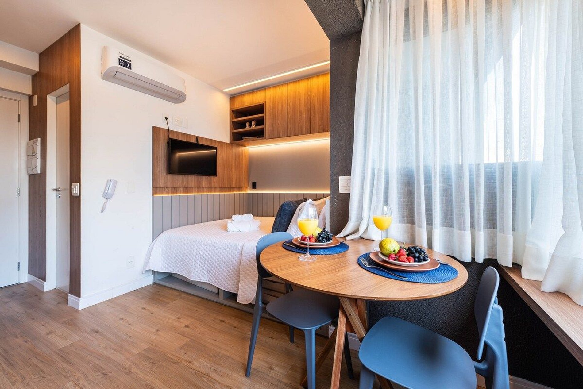 Localização privilegiada > a 1 quadra da Av. Paulista > próximo aos melhores bares e restaurantes da cidade > a 260m do metrô Conforto & Tecnologia > cama queen > internet de alta velocidade > ar condicionado > cortinas black out > smart TV com acesso a internet > fechadura eletrônica Banheiro completo > ducha com aquecimento central > box blindex > secador de cabelo Cozinha totalmente equipada > geladeira duplex com freezer > microondas > cooktop > forno elétrico > airfryer > máquina de café > sanduicheira > jogo de panelas > jogo de copos > jogo de pratos > talheres