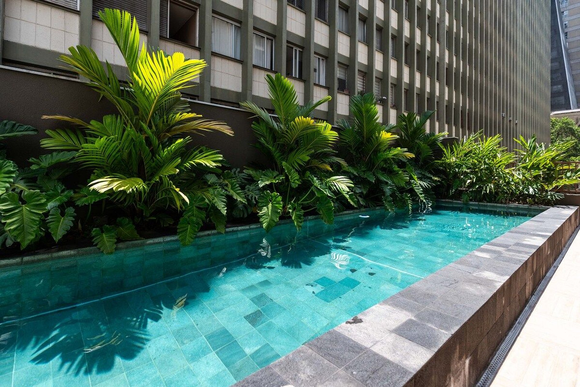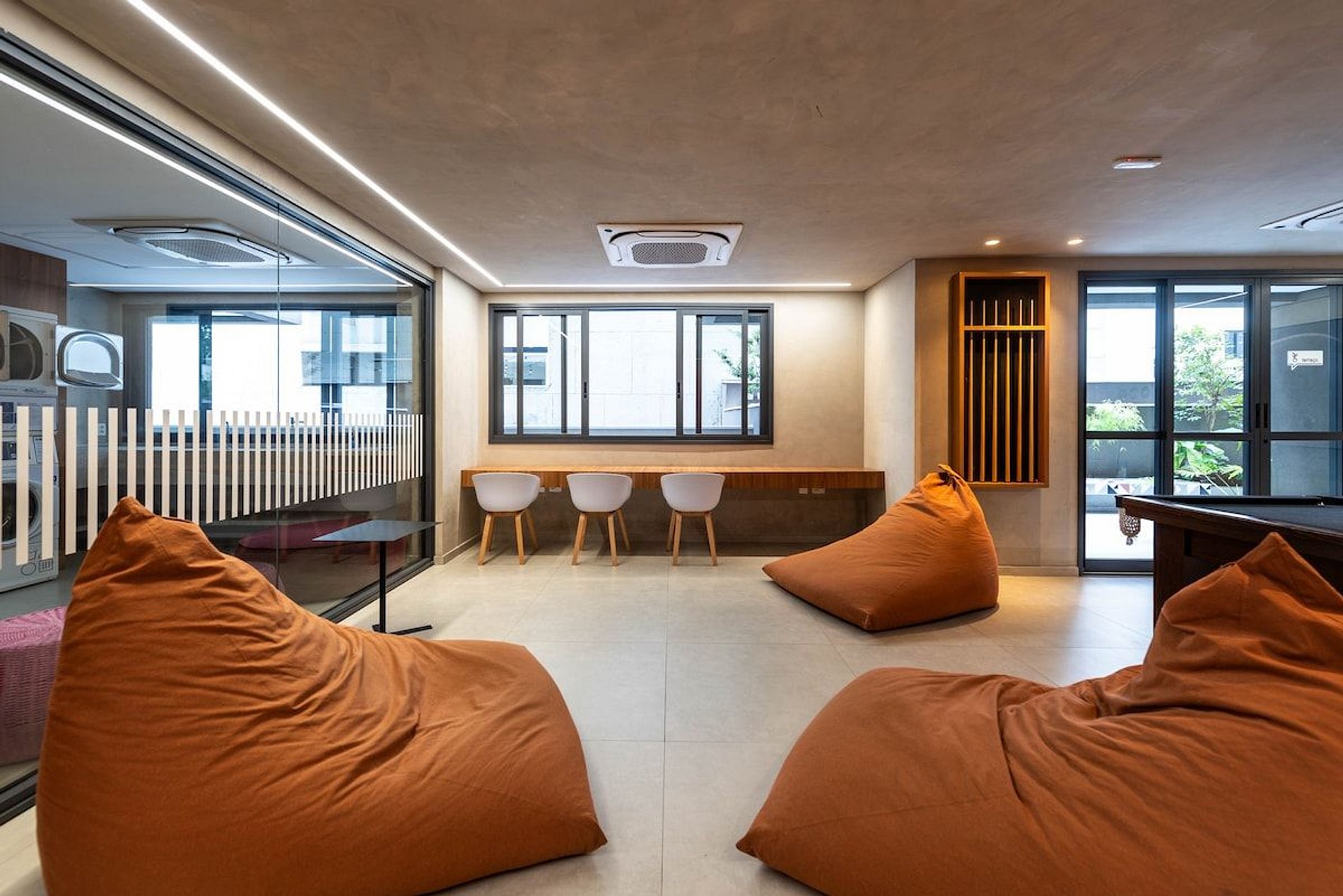 > lavanderia com máquina lava e seca (pay per use) > piscina > academia > coworking > portaria presencial 24h